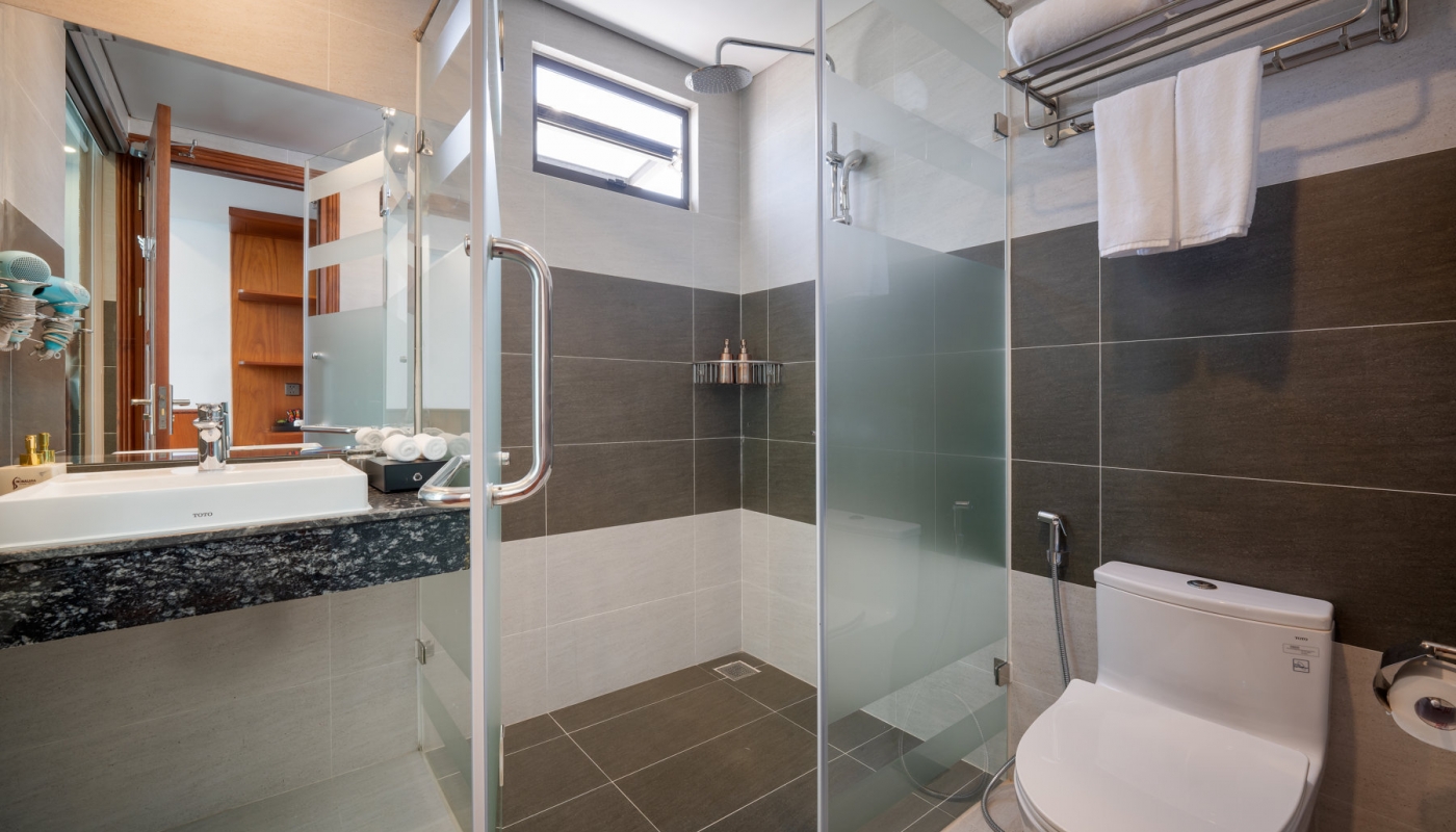 Phòng có tầm nhìn hướng Biển, tầng cao, có cửa sổ, phòng tắm đứng